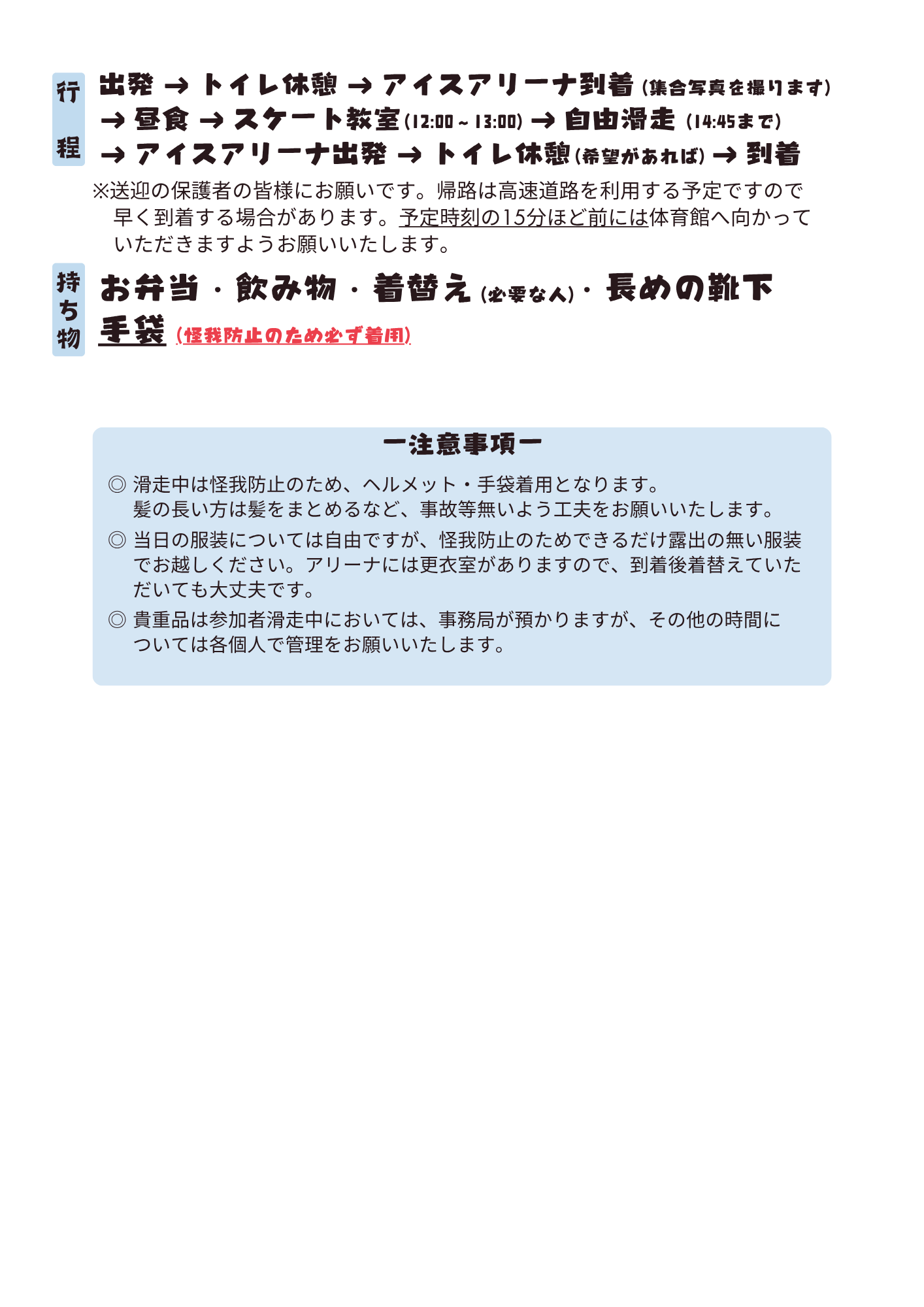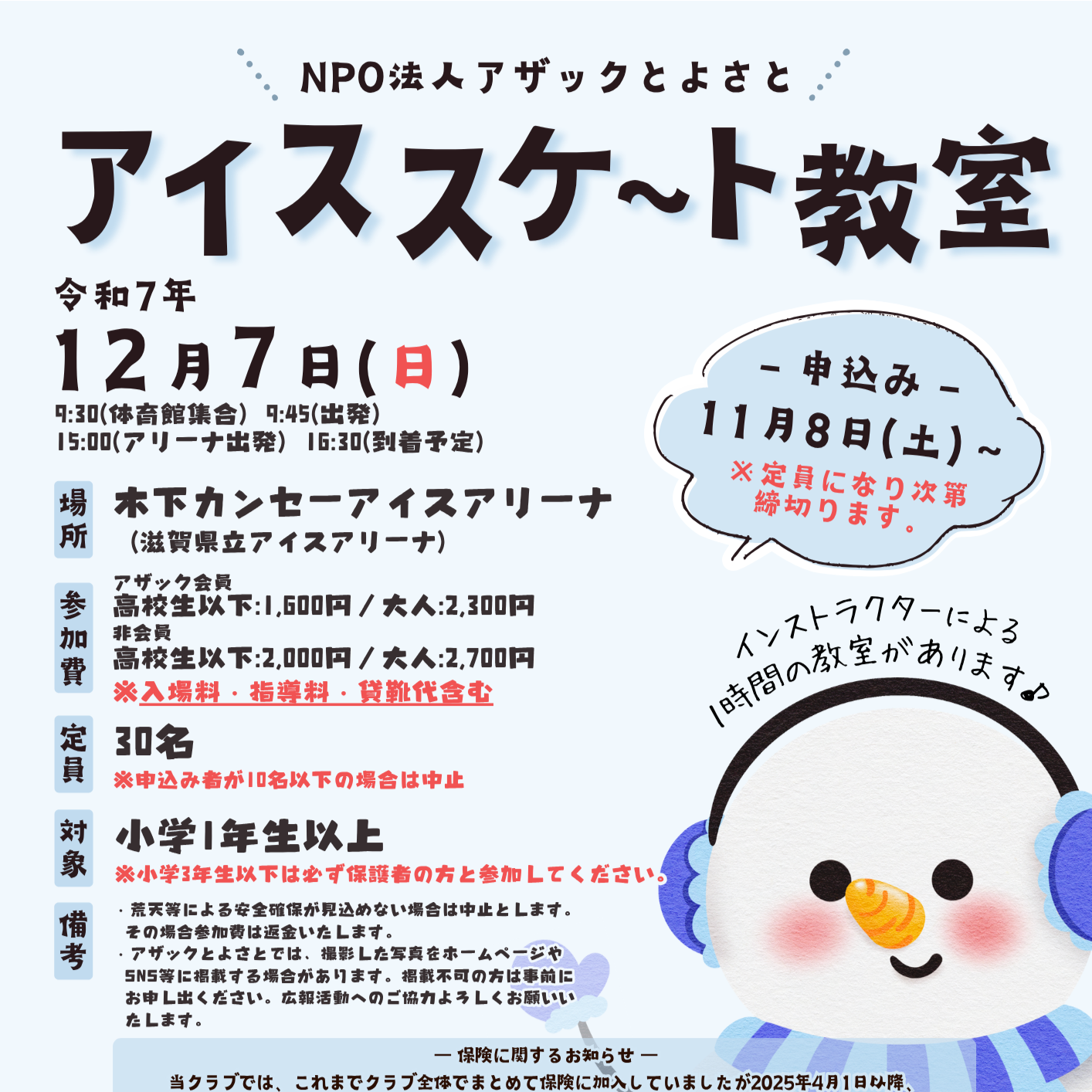 2025年度 事業開催案内 随時更新 画像をクリックすると拡大表示されます インスタグラムにて情報を発信していますので、 @azactoyosatoinfo フォローよろしくお願いします! 2025年度 事業開催案内 随時更新 画像をクリックすると拡大表示されます インスタグラムにて情報を発信していますので、 @azactoyosatoinfo フォローよろしくお願いします! アイススケート教室(表) アイススケート教室(裏) ギャラリー